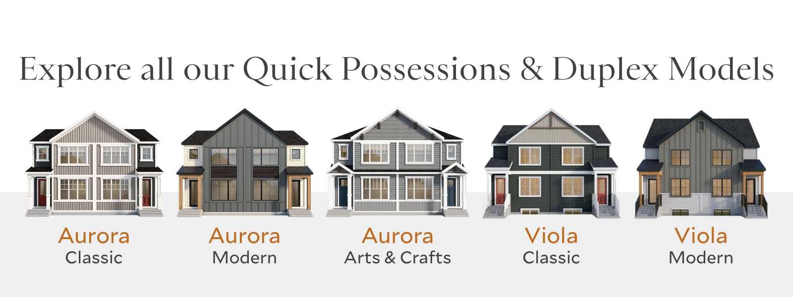 Our quick possession duplex homes are ready for you to move in before the end of the year, so you can spend the holidays in your brand-new space. Starting from just $509,900, these homes offer all the space, style, and affordability you expect from a duplex, plus extras like a fenced backyard and maintenance free front yard landscaping.